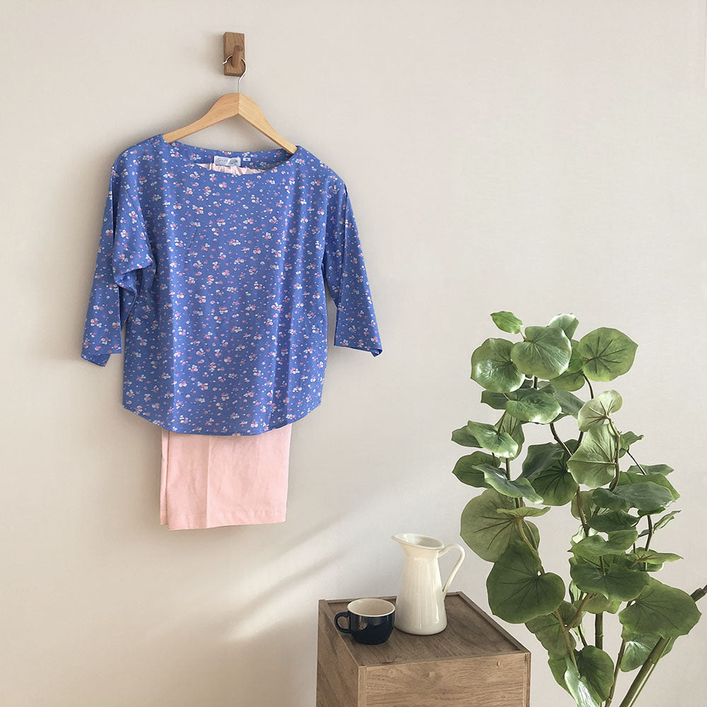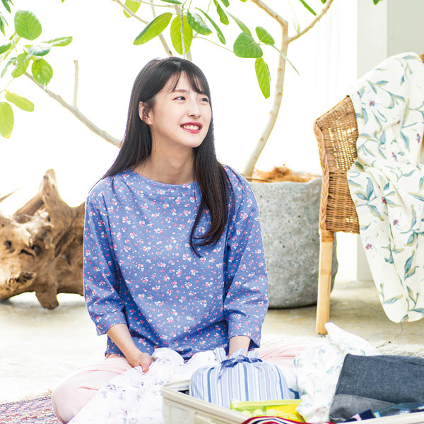 レディースパジャマ/天竺ニット/ポーチ付き(Mサイズ・ネイビーのみ)